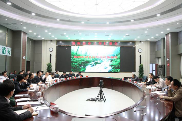 陈君文副主任一行观看了林地测土配方、古树名木管理、护林员野外巡护和林业行政审批等系统演示,听取了湖南林业工作汇报。他指出,这些年来,湖南林业积极贯彻习近平总书记“绿水青山就是金山银山”等系列论述,认真落实省委省政府推进绿色化的战略部署,以实实在在的作为和影响成为了全国林业的一面旗帜。特别是厅党组班子勇于探索,敢于担当,把民本理念、绿色理念践行到了林业改革发展的方方面面,在“以虫治虫”的绿色防治、互联网+行政审批、采伐指标入村到户、建议提案办理等一系列实事上赢得了百姓口碑和各方好评,为湖南绿水青山的名片作出了重要贡献。