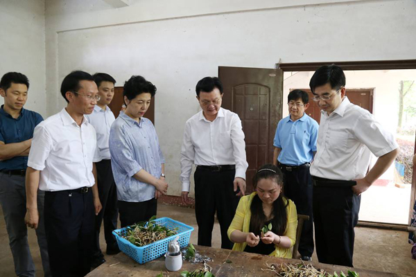 邓三龙厅长汇报指出,油茶是“能脱贫、不返贫”的绿色产业,是山区农民脱贫致富的稳定增收渠道。近年来,省林业厅一直将油茶产业打造成为精准长效的脱贫攻坚支柱产业,以每年新造50万亩、低改抚育90万亩的速度向前推进。全省300多家企业、2000多家种植大户、500多家专业合作社参与油茶发展,形成了衡阳、常德、怀化3条产业带,永州伊园、耒阳神龙等25个油茶产业示范园,常宁、桃源、邵阳等48个国家油茶重点县,形成了“一棵树撑起一个产业”、“一棵树带动一方经济”的良好局面。2016年,全省油茶林面积达2113.7万亩,茶油年产量23.4万吨,油茶年产值300.8亿元。通过油茶补贴引领扶贫、扩大就业带动扶贫、增加产量助推扶贫、提升品牌保障扶贫等措施,油茶成为脱贫攻坚的“摇钱树”,累计带动119.2万林农脱贫致富奔小康。