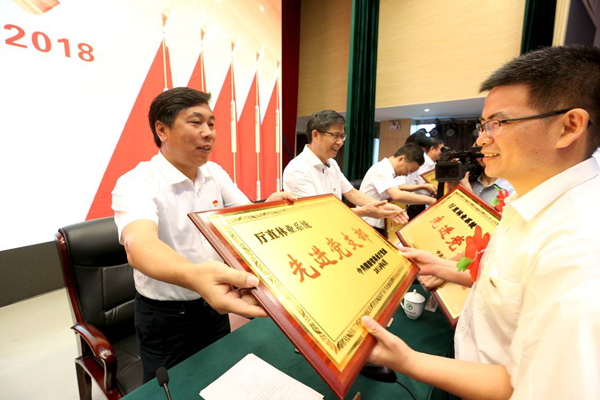 会上,全体党员合唱了《国歌》、《国际歌》,面向党旗重温了入党誓词,表彰了厅直系统50名优秀共产党员、10名优秀党务工作者、10个先进党支部。表彰会后,接着举行了湖南省林业厅“庆七一.颂改革”文艺演出暨送文艺下乡活动启动仪式。