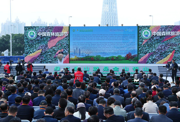 12月16日上午,由国家林业和草原局主办的2018中国森林旅游节在广州海心沙亚运公园开幕。全国政协原副主席罗富和,全国政协常委、国家林业和草原局副局长、国家林业和草原局森林旅游工作领导小组组长刘东生,亚太森林恢复与可持续管理组织董事会主席赵树丛等领导出席。省林业局党组成员、副局长吴彦承率局机关党委、计财处、保护处、湿地中心、产业办、国有林和公园局、种苗站、宣传中心、物资储备中心、风景研究中心负责人及相关市州林业局代表等湖南代表团成员参加开幕式,并考察森林旅游节分会场广州市石门国家森林公园、参加森林旅游投资与服务洽谈会暨合作签约仪式,中国森林旅游论坛等活动。