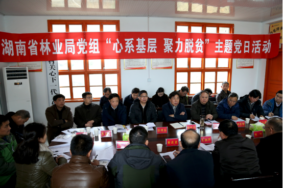 2月11日至12日,农历新年刚上班,省林业局党组书记、局长胡长清率吴彦承、彭顺喜、梁志强、吴剑波、桂小杰、李益荣、张凯锋、李志勇等全体局领导深入对口帮扶村城步苗族自治县和平村开展“心系基层聚力脱贫”主题党日活动,用实际行动践行习近平总书记“不忘初心、牢记使命”的要求,深入基层,了解贫困百姓和基层一线想什么、需要什么,从感情上、理念上、行动上拉近机关和基层距离。省森林公安局局长周国生、政委蒲少华和局办公室、人事教育处、机关党委主要负责同志一同参加,邵阳市政府副市长肖拥军和城步县委县政协、湖南南山国家公园管理局、邵阳市林业局主要负责人陪同。