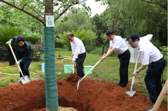 参加此次活动的各位领导和嘉宾代表还到毛泽东纪念林,挥揪铲土共同植下纪念树,并通过微信扫描二维码参加纪念林树木认种认养活动。领导和嘉宾们用实际行动表示要把湖南建成天蓝、地绿、水清、气净的生态强省,为美丽中国建设贡献湖南力量。