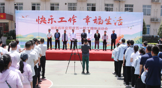 胡长清在致辞中指出,局党组一直倡导“快乐工作幸福生活”的理念,鼓励林业干部职工积极参加文明、健康的文体活动,努力营造团结紧张、严肃活泼的机关文化氛围。本次趣味运动会就是机关精神文明建设的有效载体,让广大干部职工既释放了压力、舒缓了情绪,又展示了积极向上、顽强拼搏的精神风貌,取得了良好的成效。希望全体干部职工在欢庆“五一”之际,心守家国情怀,肩扛责任使命,把运动会上激发出的热情、激情和豪情,带到今后的工作、学习和生活中去,以信念坚守初心,以奋斗践行使命,以奉献诠释忠诚,全力投身全省生态保护、生态提质、生态惠民的光荣事业当中,为推动湖南林业高质量发展作出更大的贡献。