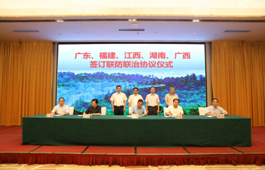 与会人员参观了松材线虫病防治技术示范现场,交流了松材线虫病疫情防控五年攻坚推进情况,会商了松材线虫病联防联治工作。国家林草局生态保护修复司一级巡视员陈建武强调,要增强省际间优势互补、数据互通、成果共享、协同发展的良好态势,共同维护生物安全和生态安全。各省与会代表签订了《粤闽赣湘桂林业有害生物联防联治协作框架协议》,将进一步加强省区之间重大林业有害生物防控方面的合作。