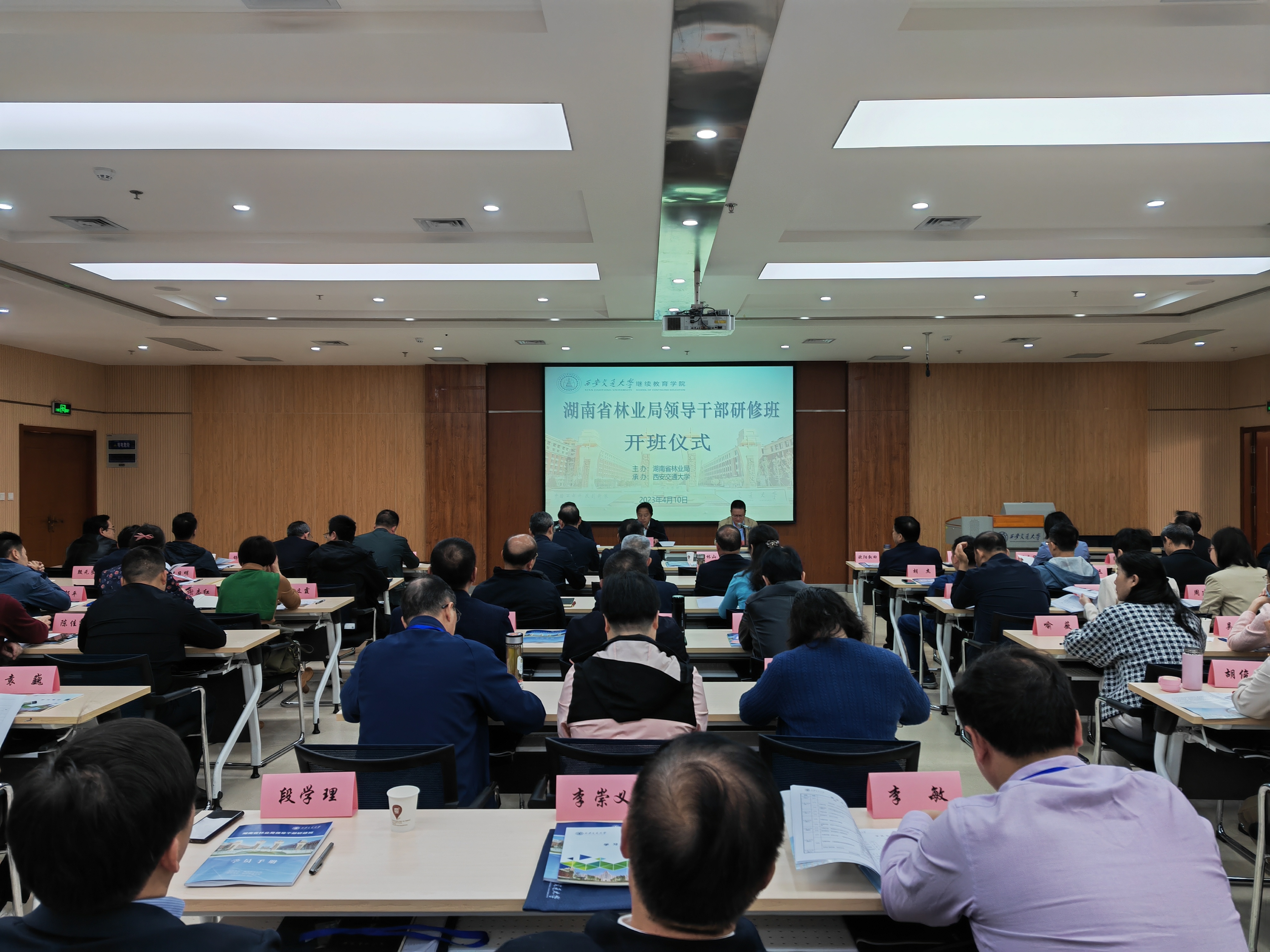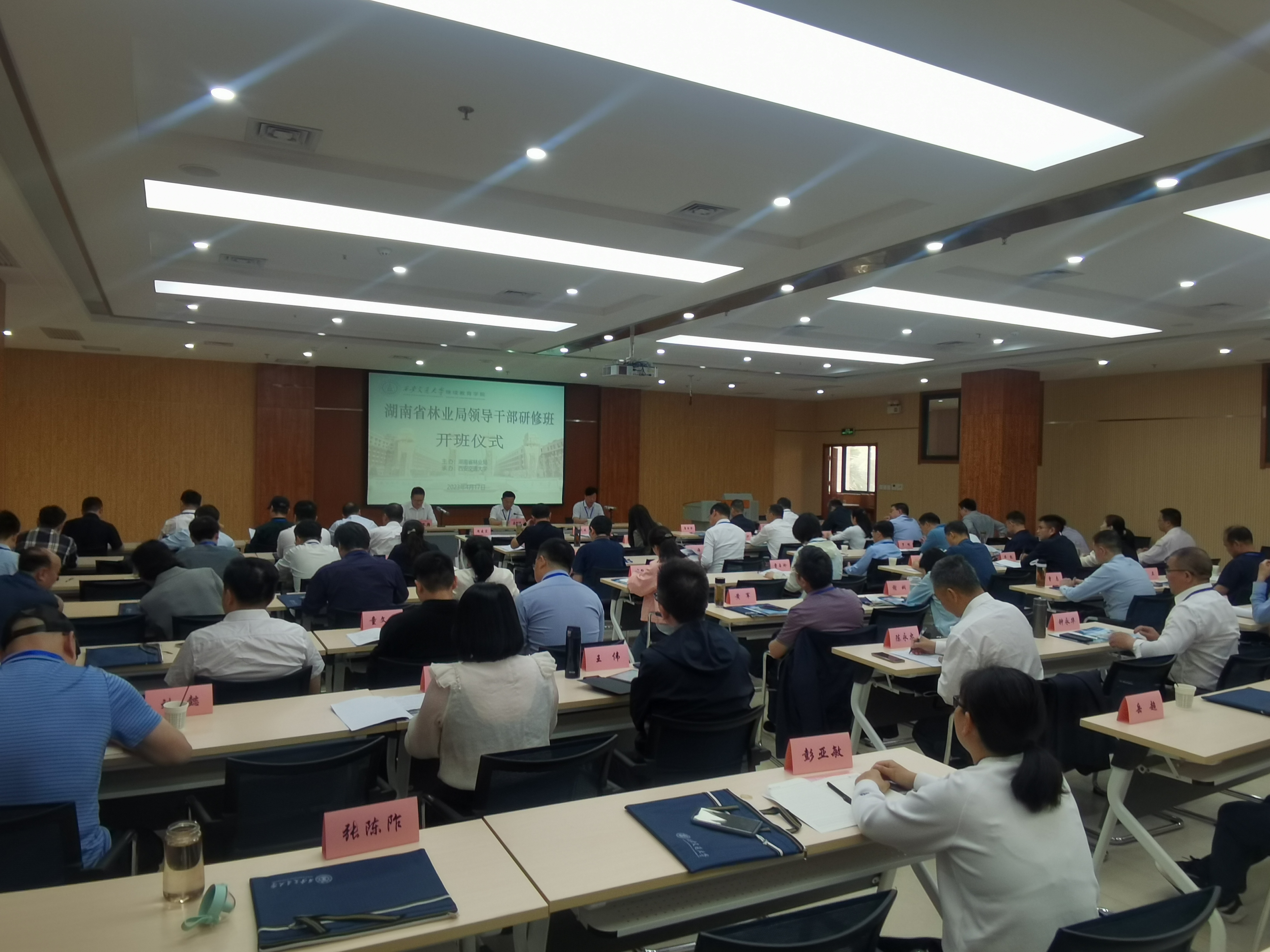 为深入开展学习贯彻习近平新时代中国特色社会主义思想主题教育,持续深化党的二十大精神学习,全面提升局直系统领导干部党性修养、综合素质和业务能力,4月9日至22日,省林业局在西安交通大学举办了两期局直系统领导干部研修班,局党组成员、副局长吴剑波、李林山,局党组成员、南山国家公园管理局局长王明旭,省国有林和种苗工作站二级巡视员欧阳叙回,局直系统副处级以上领导干部共123人参加了研修班学习。