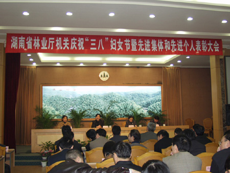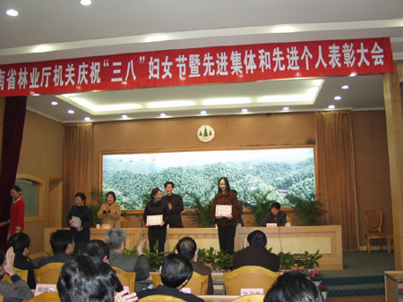 3月8日上午,省林业厅机关庆祝“三八”妇女节暨先进集体和先进个人表彰大会在厅森保楼四楼会议室举行,厅领导葛汉栋、李定一、黄旭国、胡长清、唐苗生、赵爱群、刘绍祥及省直工委领导参加了会议。会议表彰了王光荣等13名“工会工作最佳支持者”;王中超等9个“五好文明家庭”;王溪林等9名“巾帼建功先进个人”;厅办公室等9个“先进工会小组”;王国斗等43名“优秀工会积极分子”;孙琳娜等9名“优秀工会工作者”。表彰会后,省花协插花分会会长黎佩龙围绕东方式、西方式、节日、公务、慰问等5个方面的插花基本知识,采取边讲边示范方法进行讲课。根据黎佩龙老师的讲课,厅机关妇女同志分成9个组进行了插花比赛。
