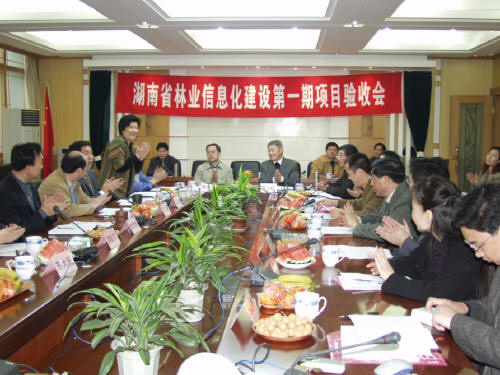 验收委员会一致认为,湖南省林业信息化建设第一期项目建设符合《湖南省林业信息化工程总体规划方案》的要求;进度快,投资省;设计合理,技术先进,系统界面友好、操作方便,具有很好的实用性和可扩展性;文档资料齐全,符合验收的要求。项目的建设能切实有效地提高全省林业行业的工作效率和管理水平,促进全省林业行政管理的规范化、标准化、现代化。项目总体达到全国同行业领先水平,同意通过验收。