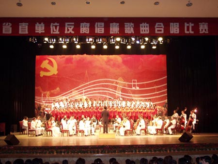 为进一步落实党中央颁布的《建立健全教育、制度、监督并重的惩治和预防腐败体系实施纲要》,根据中央纪委的指示精神和省纪委的安排,省直工委组织了省直单位反腐倡廉歌曲合唱比赛。12月14日,湖南大剧院三楼演出大厅,歌声嘹亮,掌声阵阵,参加合唱比赛的30支代表队在这里进行了精彩的表演。