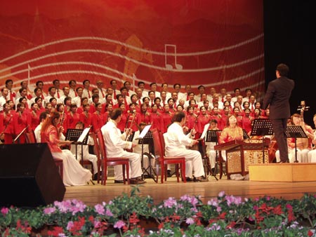 我厅合唱队共93人,由厅机关退休老同志、林科院、林勘院的干部、职工等组成。经过一个多月的训练和准备,下午4时,伴随着舞台上的飘飘红旗和台下的阵阵掌声,我厅合唱队演唱了以反腐倡廉、爱党爱国为主旋律的《纪检监察之歌》、《保卫黄河》两首歌曲,展示了省林业厅机关干部、职工求真务实、团结进取的精神风貌。