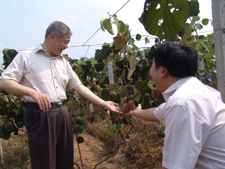 葛汉栋厅长解退耕地猕猴桃生长情况