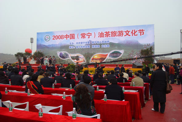 上午8时,原全国政协副主席毛致用同志,国家林业局植树造林司副司长吴坚、场圃站副站长尹刚长,省林业厅副厅长唐苗生,中共衡阳市委书记张文雄,衡阳市委副书记、代市长张自银等近500位嘉宾和上万市民群众参加了开幕式。原全国政协副主席毛致用同志宣布2008中国(常宁)油茶旅游文化节隆重开幕,省林业厅副厅长唐苗生、国家林业局植树造林司副司长吴坚等领导在会上致辞。
