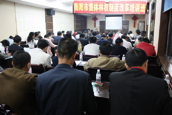 4月8日至10日,集体林权制度改革培训班在衡阳市文正大酒店举办。省林业厅法规处、信息中心、省林改办同志、市档案管理局副局长唐泰、市政府法制办行政复议应诉科科长梁新平等领导分别为培训班授课。培训班由市林业局工会主席曹敏慧主持,副局长王美志在培训班开班典礼上作了重要讲话,副局长刘九江对培训班作了总结。各县、市、区林业局主管林改的副局长、林改办主任、规划设计调查队长、林政股长、林权发证电脑操作员、档案管理负责人等80多人参加了培训。