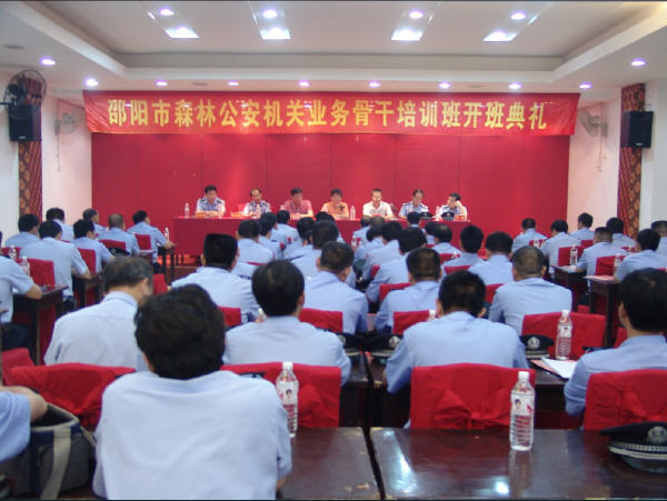 6月30日,邵阳市森林公安机关业务骨干培训班开学典礼在洞口县武装部举行,市林业局局长王德席、市公安局副局长毕金华、市林业局副局长李秀清、洞口县县委常委政法委书记许又龙和市森林公安局局长海仕民等领导出席开学典礼。市局森林公安机关及9个县(市)森林公安局共57名骨干民警进行为期一周的集中培训。
