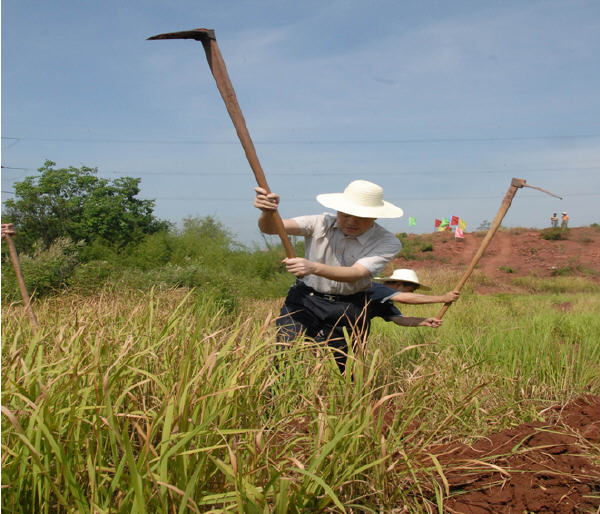 7月9日上午,衡阳县委书记肖顺生在县委常委、县委办主任戴新贤、县政府副调研员傅湖北、县林业局局长方云廷等人的陪同下,视察西渡、演陂、库宗、金兰等乡镇的“三边”造林绿化夏季整地现场。在听取有关情况汇报后,肖书记兴致勃勃地拿起锄头,与农民一道参加劳动。