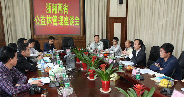 浙湘两省公益林管理工作座谈会4月19日在长沙举行。柏方敏副厅长主持会议并发表重要讲话。浙湘两省公益林管理工作领导和代表20多人参加了会议。