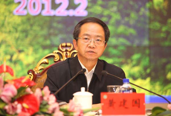省委常委、省纪委书记黄建国发表重要讲话。他高度重视林业发展和生态建设,充分肯定了林业改革发展取得的重大成绩。他指出,近年来,林业部门开拓创新,锐意进取,创造了全国第一个林地测土配方信息系统、全国第一部地方性林产品质量安全法规等若干个中国林业的“第一”, 全省森林覆盖率、森林蓄积量、林业产业总产值等各项指标均居全国前列,在维护国家生态安全、木材安全、粮油安全、能源安全及在林产工业、森林和湿地生态旅游等领域都作出了重要贡献。同时,林业部门队伍好、风气正,是绿色湖南建设的牵头单位,是 省绩效评估和反腐倡廉建设的先进单位,承担了许多省委、省政府交付的重任,为推进“四化两型”、实现富民强省作出了重要贡献。