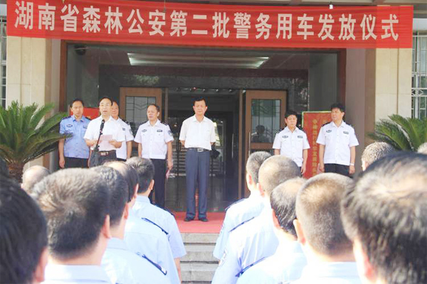 省林业厅厅长、党组书记邓三龙出席警车发放仪式,并作重要讲话。他指出,在当前严格控制公务用车采购的情况下,省厅通过与相关部门协调,争取特批,续去年10月发放第一批警车后,今天我们又发放第二批警车,这充分体现了厅党组对森林公安的关心和厚爱。他要求,全省森林公安机关要紧紧围绕林业发展和公安工作大局,切实加强警车管理使用,扎实推进森林公安“五化建设”,严厉打击破坏森林资源违法犯罪行为,以有为促有位,以有位促有为,为推动科学发展、发展现代林业和建设绿色湖南作出新的更大贡献。