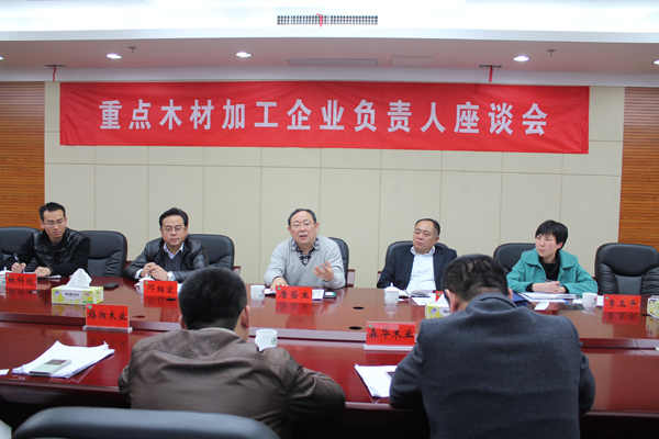 森华木业、福湘木业、桃花江竹业、华宇竹业等20家木、竹加工龙头企业负责人到会座谈,省林产品质量检验检测中心、省林科院、益阳市林业局、桃江县人民政府、桃江县林业局相关负责人出席会议。唐苗生副厅长听取各单位的发言后,对各加工企业取得的成就表示祝贺,同时勉励木竹加工龙头企业要勇于面对当前经济发展的新常态,在当前宏大的经济调整中找准企业位置,通过技术、产品和营销创新,调整产业结构,提升发展方式,走联盟发展之路。