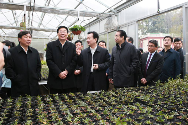 2月23日上午,省委书记、省人大常委会主任徐守盛率省委常委、省委秘书长许又声、省人民政府副省长戴道晋、省委副秘书长、省委政研室主任曹炯芳、省委副秘书长陈爱林,莅临我厅考察调研林业工作,厅党组书记、厅长邓三龙全程陪同调研。