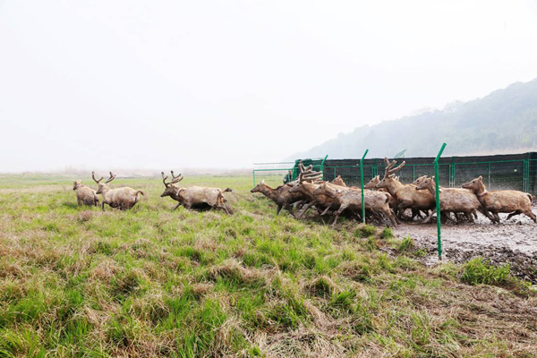 陈凤学副局长在讲话中指出,当前我国已经形成了较为完善的野生动植物保护法律法规体系,建立了一大批自然保护区,保护地面积已经达到国土陆地面积的18%,高于世界平均水平。今天放归的麋鹿是我国一级保护野生动物,曾一度在我国境内灭绝。1985年从国外引进种源至今,已成功繁育4800多头,并通过放归自然,在江苏、湖北、湖南、河南、河北等地形成野外种群。麋鹿成功回归故里,稳定繁衍生息,标志着自然生态系统正在向良性演变,标志着我们为保护自然又取得了新的成绩。