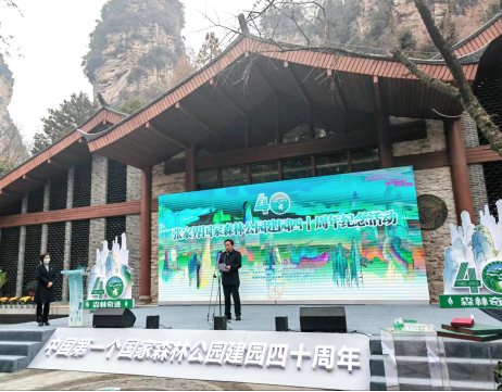 12月23日,张家界国家森林公园在武陵源老磨湾广场举行建园四十周年纪念活动,省林业局党组成员、副局长李林山出席活动并致辞。国家林草局国有林场和种苗管理司巡视员、全国森林旅游管理办公室副主任陈鑫峰以视频方式对建园四十周年给予祝贺,中国绿色碳汇基金会理事长、国家林草局(国家公园管理局)原总经济师杨超致辞,张家界市委书记刘革安出席并宣布活动启动。