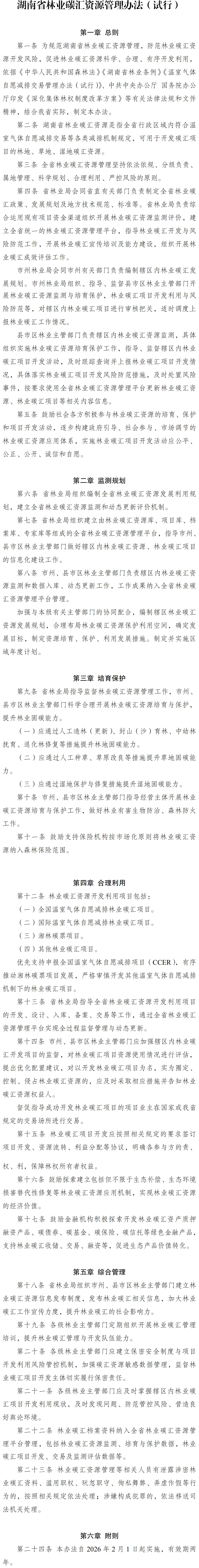 《湖南省林业碳汇资源管理办法(试行)》政策解读