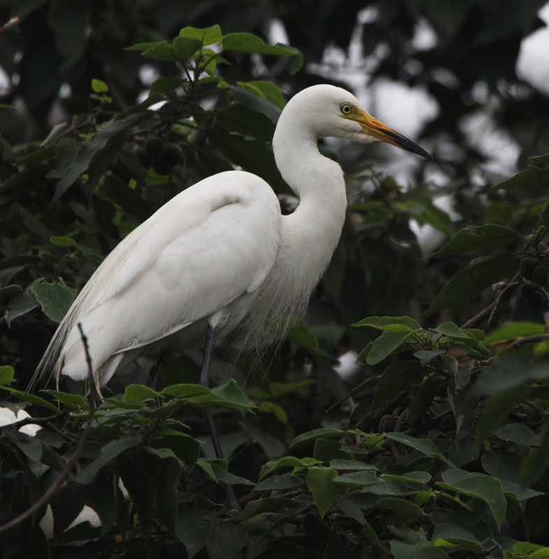 涉禽,体长62~70cm。全身白色,眼先黄色,脚和趾黑色。夏羽背和前颈下部有长的披针形饰羽,嘴黄色,前部黑色;冬羽背和前颈无饰羽,嘴黄色,先端黑色。栖息和活动于河流、湖泊、河口、水塘岸边浅水处及河滩上。以鱼、虾、蛙、蝗虫、蝼蛄等水生和陆生昆虫及昆虫幼虫为食。成群或与其它鹭在一起营群巢于树林或竹林内。洞庭湖区为夏候鸟。种群数量稀少。少见。