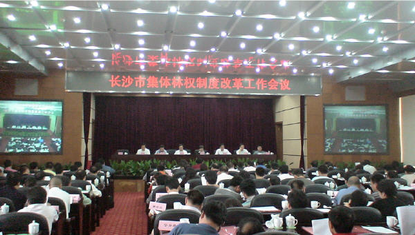 5月7日下午,长沙市委、市政府在市会议中心二会议室召开了长沙市集体林权制度改革工作会议。出席会议的有市委常委、常务副市长谢建辉、市委常委、副市长张迎龙、市人大副主任彭可平、市政协副主席黄中瑞等市领导,各县(市)区县(市)区长、分管副县(市)区长、政府办主任、财政局长、林业(农林水利局)局长以及除浏阳市外的各乡(镇)长和市直有关部门负责人参加了会议。参会人员共计180人。会议由市政府副秘书长曾慧明主持。会上,市委常委、副市长、市林改领导小组副组长张迎龙同志作了全面推进集体林权制度改革的工作报告。浏阳市政府作了试点经验介绍发言。各县(市)区县(市)区长向谢建辉常务副市长递交了集体林权制度改革责任书和松材线虫病防控责任书。市委常委、常务副市长谢建辉同志作了重要讲话。