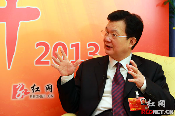(全国人大代表,湖南省林业厅厅长邓三龙在作客红网“实干2013”全国两会访谈室。)