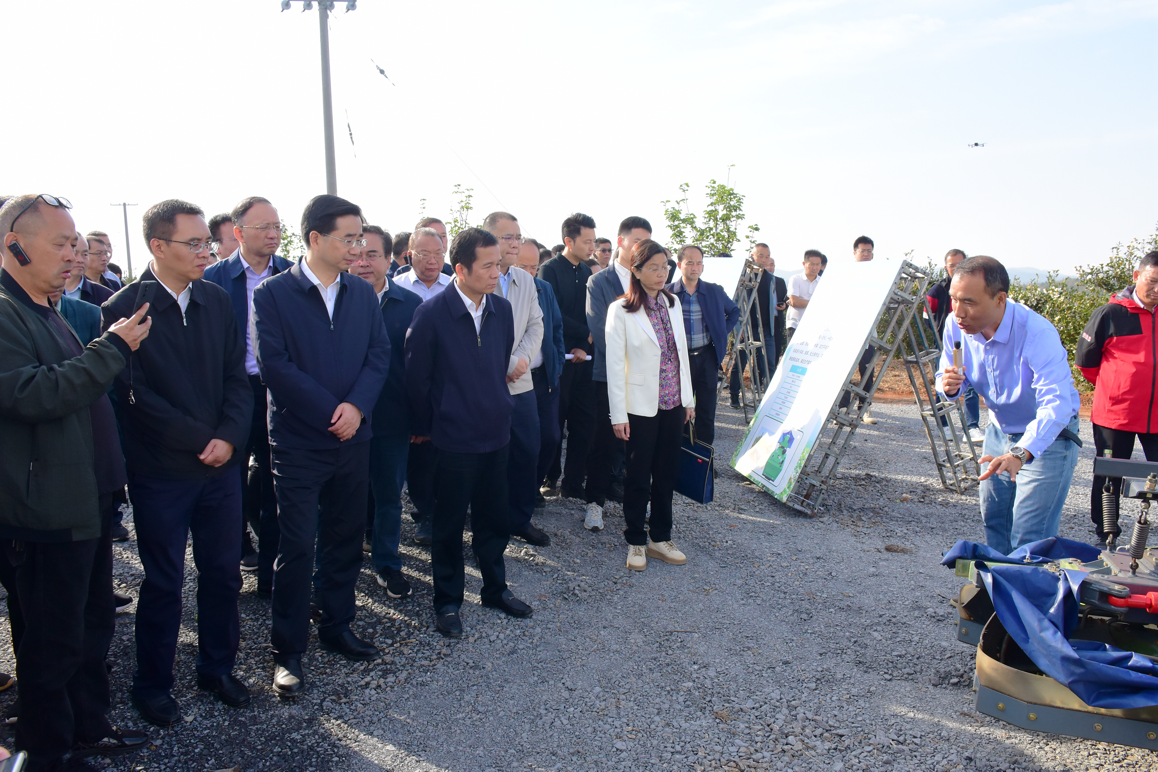 来自全省14个市州的与会代表在湖南雷叔叔油茶产业发展有限公司现场观摩。省内外30多家高校、科研院所和企业演示了涵盖油茶水肥一体化、油茶果机械化采收、机械化抚育、机械化运输、无人机管护、油茶果初加工等各环节共50多台(套)机具装备。