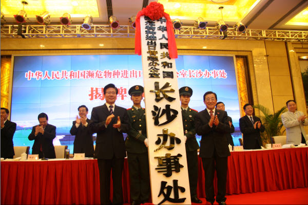 2009年11月10日上午,中华人民共和国濒危物种进出口管理办公室长沙办事处揭牌仪式在长沙举行。国家林业局局长贾治邦,湖南省省委书记、省人大常委会主任张春贤共同为长沙办事处揭牌。湖南省委常委、省委秘书长杨泰波主持揭牌仪式。