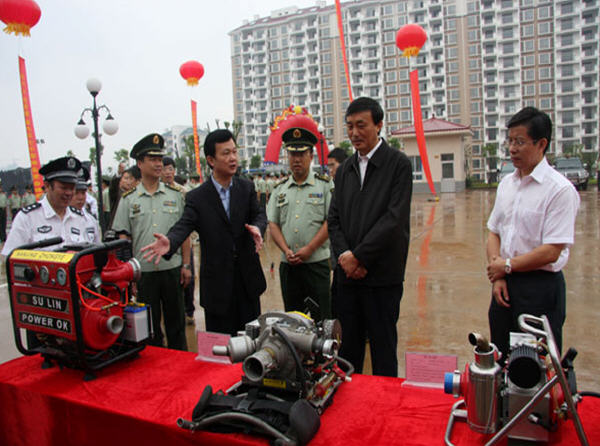仪式结束后,徐明华副省长为新营房题词并饶有兴趣地参观了部队新营房及装备。