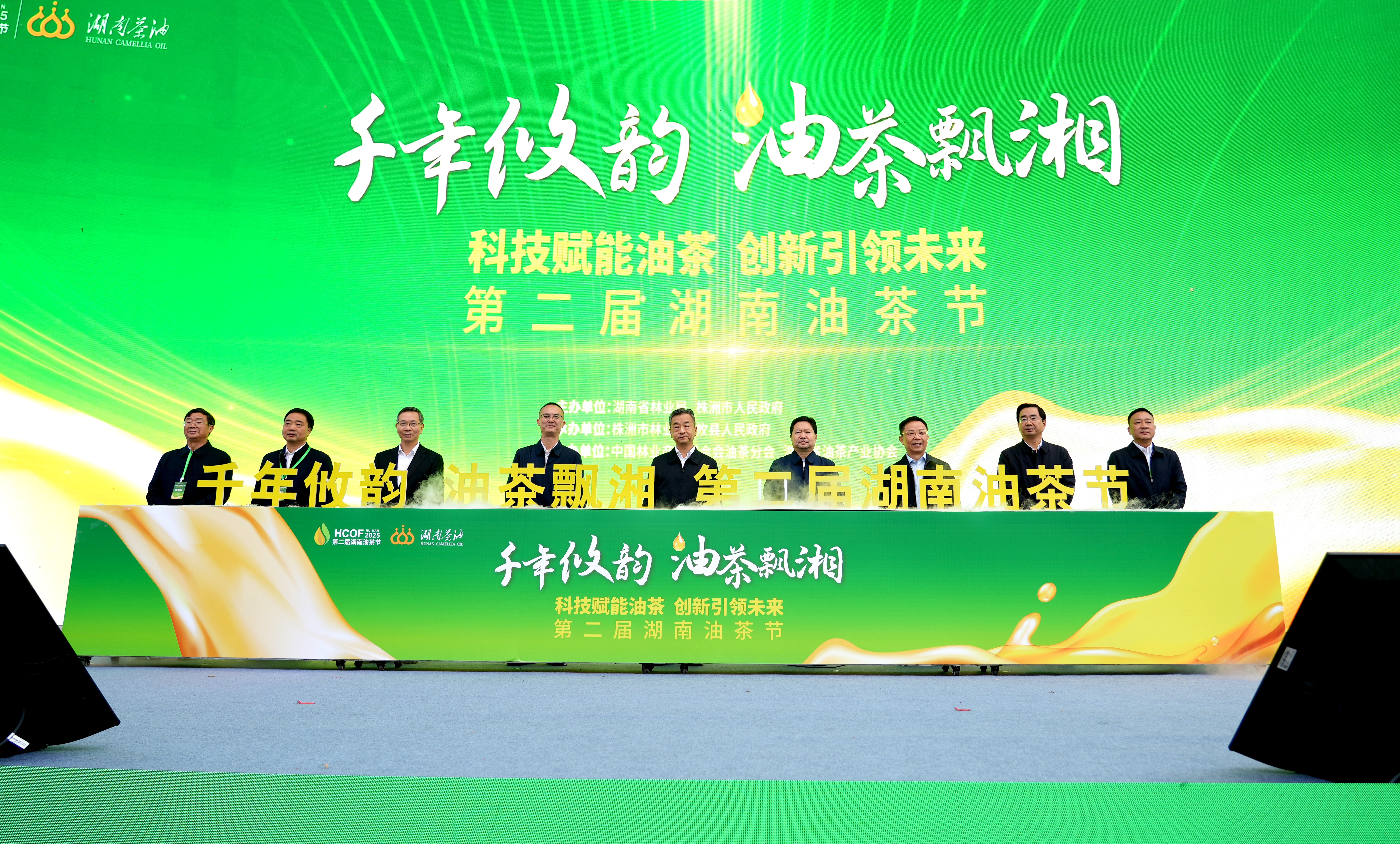 2025年10月26日,由湖南省林业局和株洲市人民政府联合主办、株洲市林业局和攸县人民政府承办、中国林业产业联合会油茶分会和湖南省油茶产业协会协办的第二届湖南油茶节在“中国油茶之乡”攸县成功举办。省人民政府党组成员、副省长陈竞宣布开幕。国家林业和草原局改革发展司司长王俊中,省人民政府副秘书长杨通远,省林业局党组书记、局长吴剑波,副局长胡锋,株洲市委副书记、市长陈恢清出席开幕式,株洲市人民政府副市长刘飞勇主持,攸县县委书记李鹏程致欢迎词。江西、广西、广东、湖北四省区林业局代表,省直有关单位、金融保险机构、国有企业相关负责人及14个市州人民政府分管领导,湖南省各市州林业局、油茶重点县人民政府和林业主管部门、株洲市和攸县相关部门负责人,全国油茶气象服务专家联盟、中南林业科技大学等科研院校的领导和专家以及省内外行业协会、企业代表,媒体记者齐聚攸县,共同见证这一产业盛事。