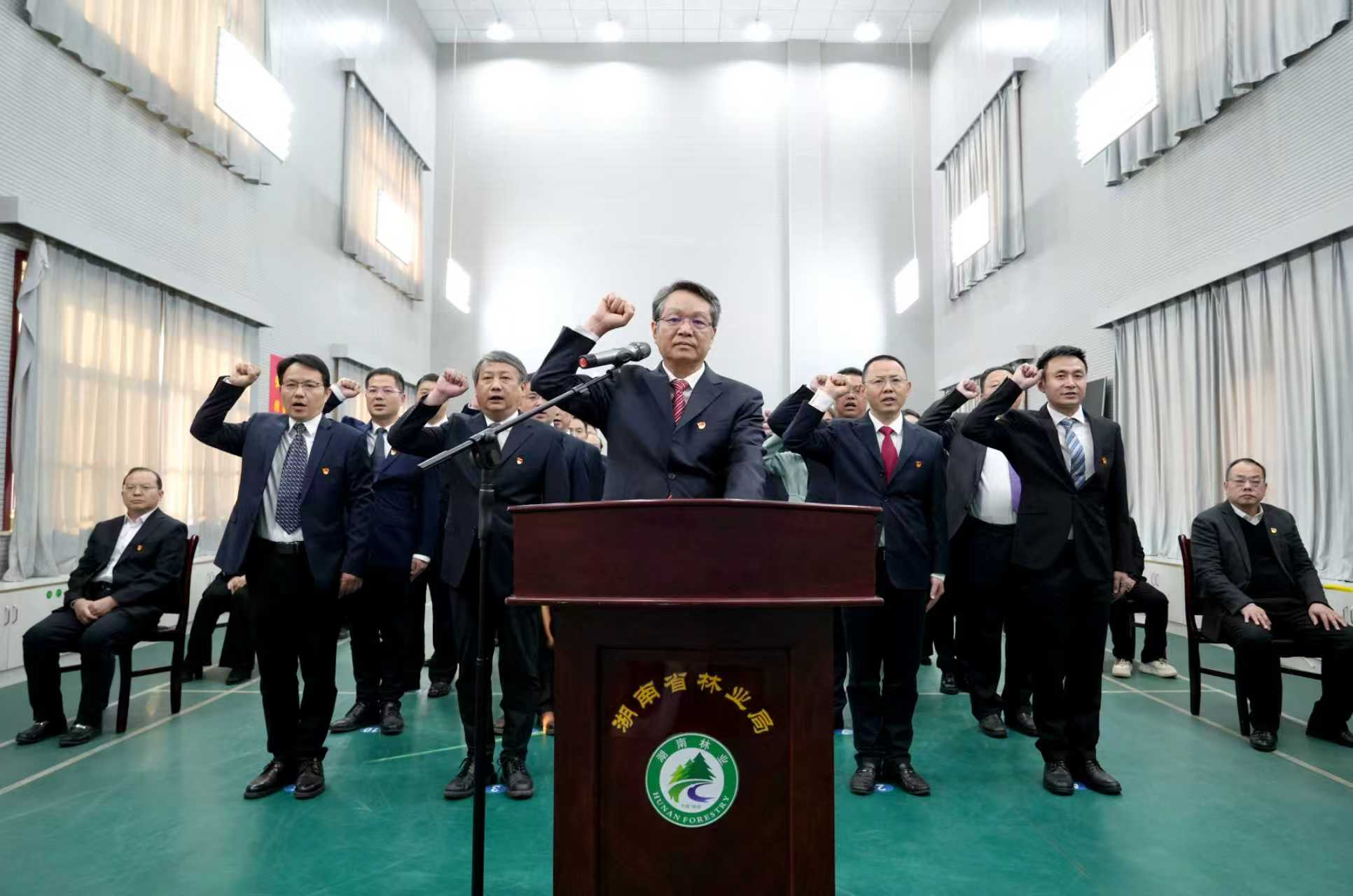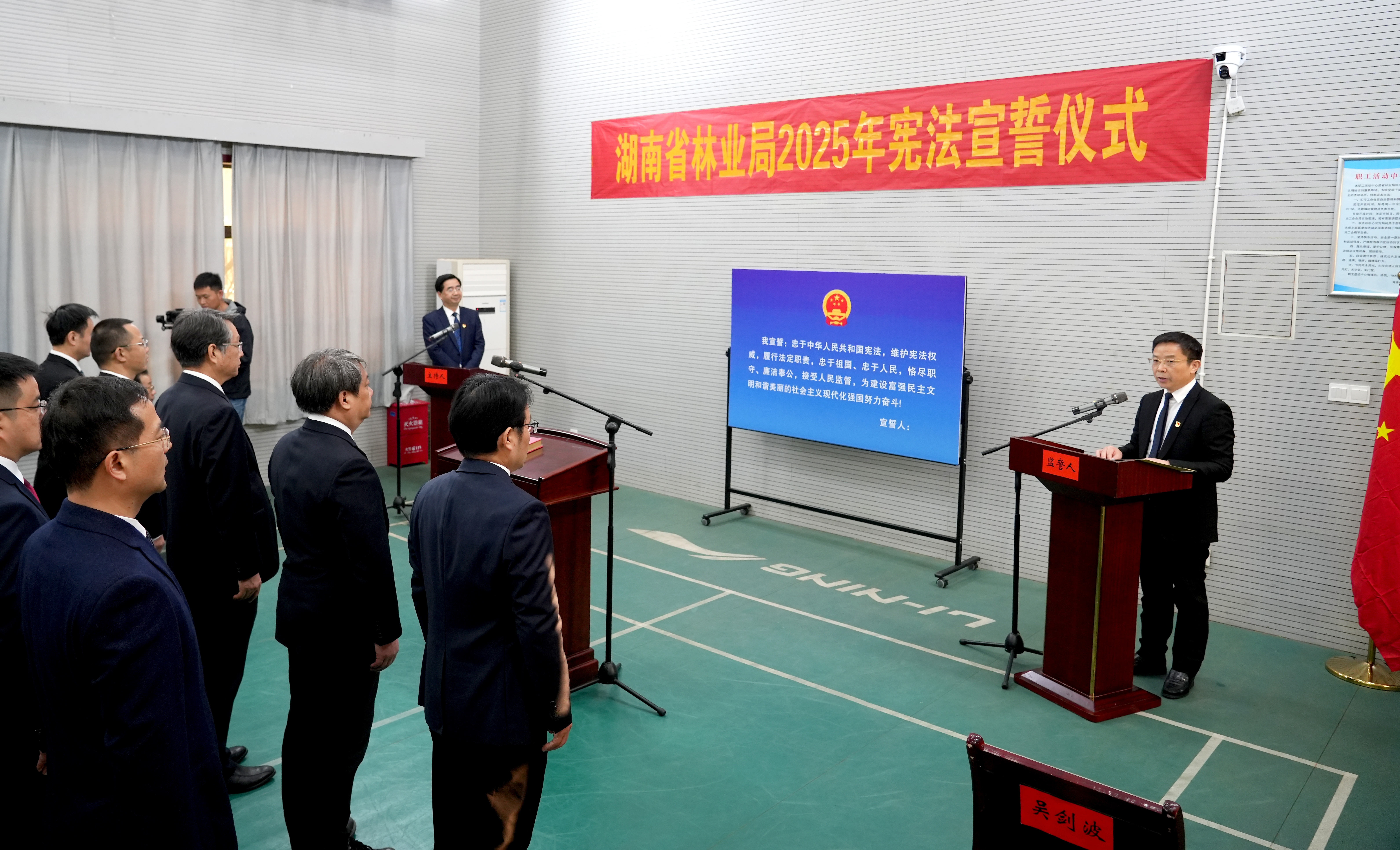 12月19日上午,省林业局举行2025年宪法宣誓仪式。局党组书记、局长吴剑波监誓并讲话,局党组成员、副局长胡锋主持宣誓仪式,局党组成员、驻局纪检监察组组长王芳柏,局党组成员、副局长贺正,局总工程师李玉平,局二级巡视员夏艳萍,局二级巡视员陈春华,省国有林和种苗工作站二级巡视员薛萍,驻局纪检监察组二级巡视员苏立刚见证宣誓,局二级巡视员陈红长带领局机关及局直单位28名同志集体宣誓。