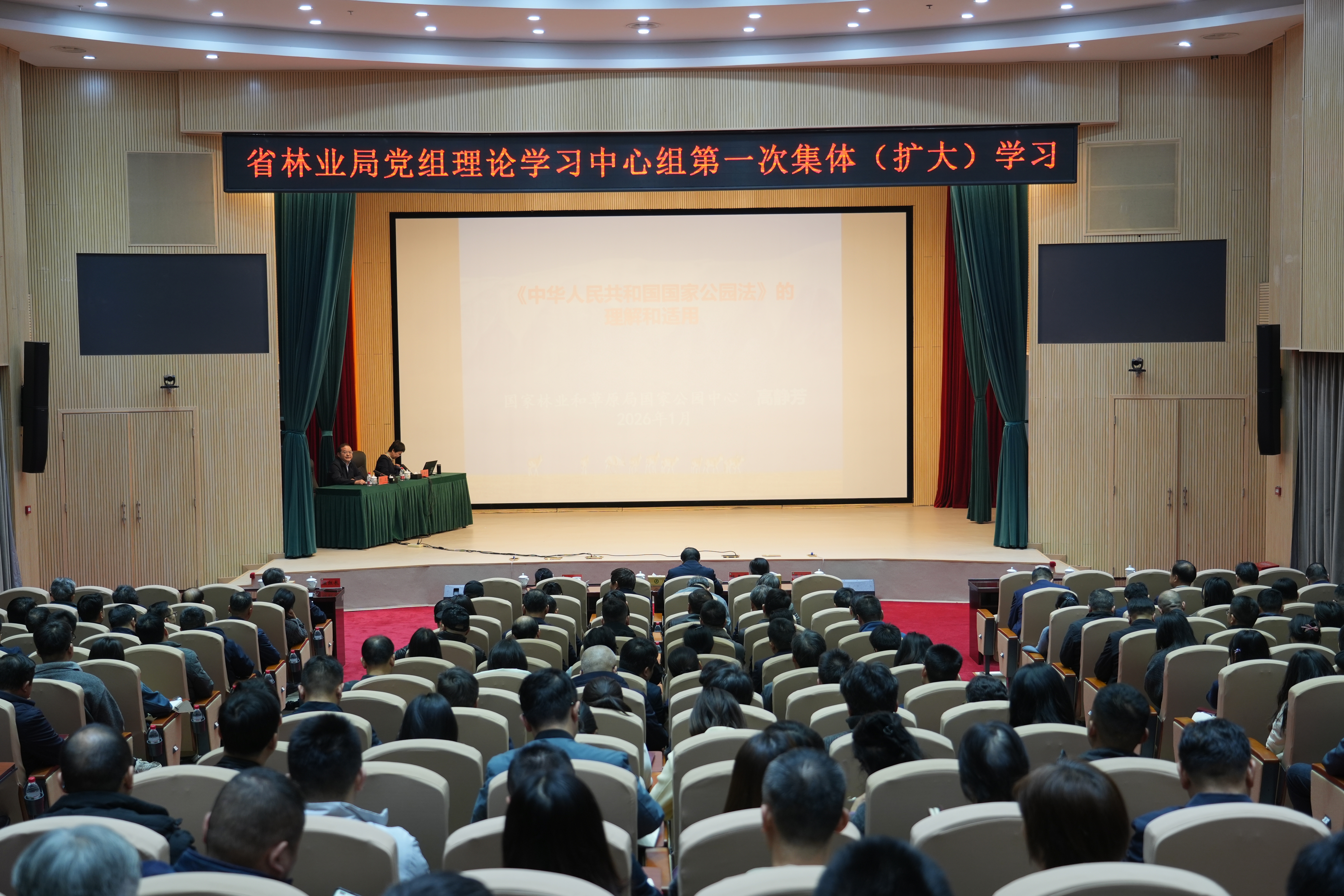 1月16日上午,省林业局党组理论学习中心组举行集体(扩大)学习。局党组成员、副局长贺正主持会议,全体在家局领导、总工程师、二巡以上职级领导、省纪委监委驻局纪检监察组全体成员,局机关全体干部职工、离退休党支部书记,局直属各单位党政班子成员参加学习。国家林草局国家公园中心副主任高静芳围绕《中华人民共和国国家公园法》的立法背景、重大意义、核心制度和实践要求,进行了全面系统的解读。