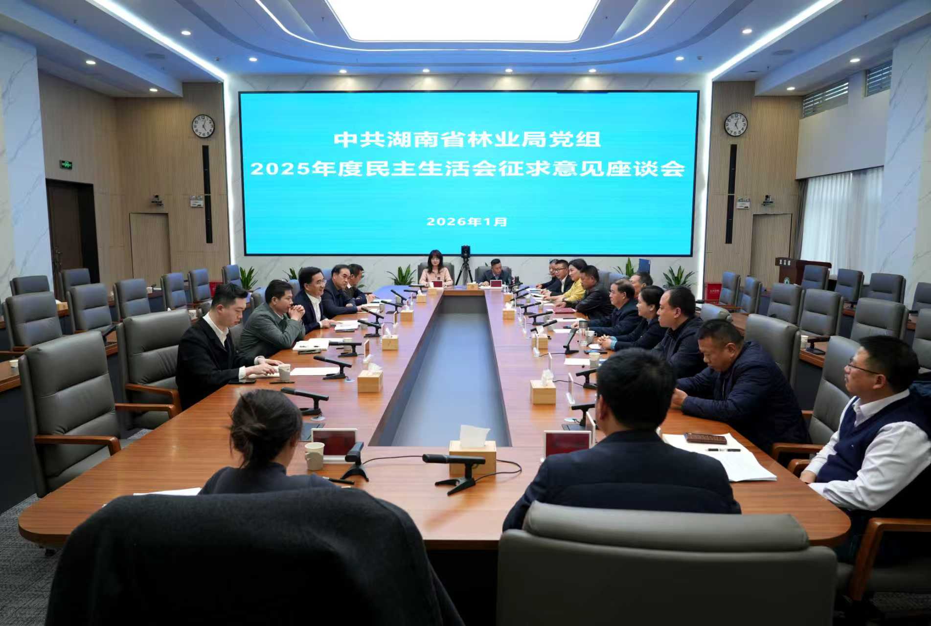 1月14日,受局党组书记、局长吴剑波的委托,局党组成员、副局长胡锋主持召开省林业局党组2025年度民主生活会征求意见座谈会,与省党代表、省人大代表、民主党派和无党派代表、企业代表、基层林业代表、局离退休干部代表、青年干部代表等进行座谈,就高质量开好局党组2025年度民主生活会,面对面听取各方面代表的意见建议。